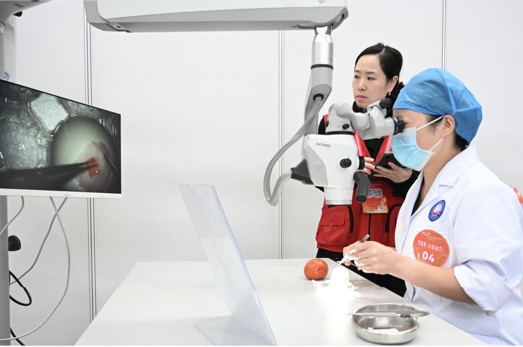 值得关注的是,本届大赛首次设置“挑战赛”,包括手术机器人操作和“妙手精巧”两大项目。其中,手术机器人操作竞赛要求选手使用胸腹腔内窥镜手术系统完成精细操作,展现微创外科前沿技术的临床应用能力。“妙手精巧”竞赛中,选手在显微镜下用发丝般细的缝线,为鸭蛋开展“脑膜”移植模拟操作,兼具趣味性与专业性。